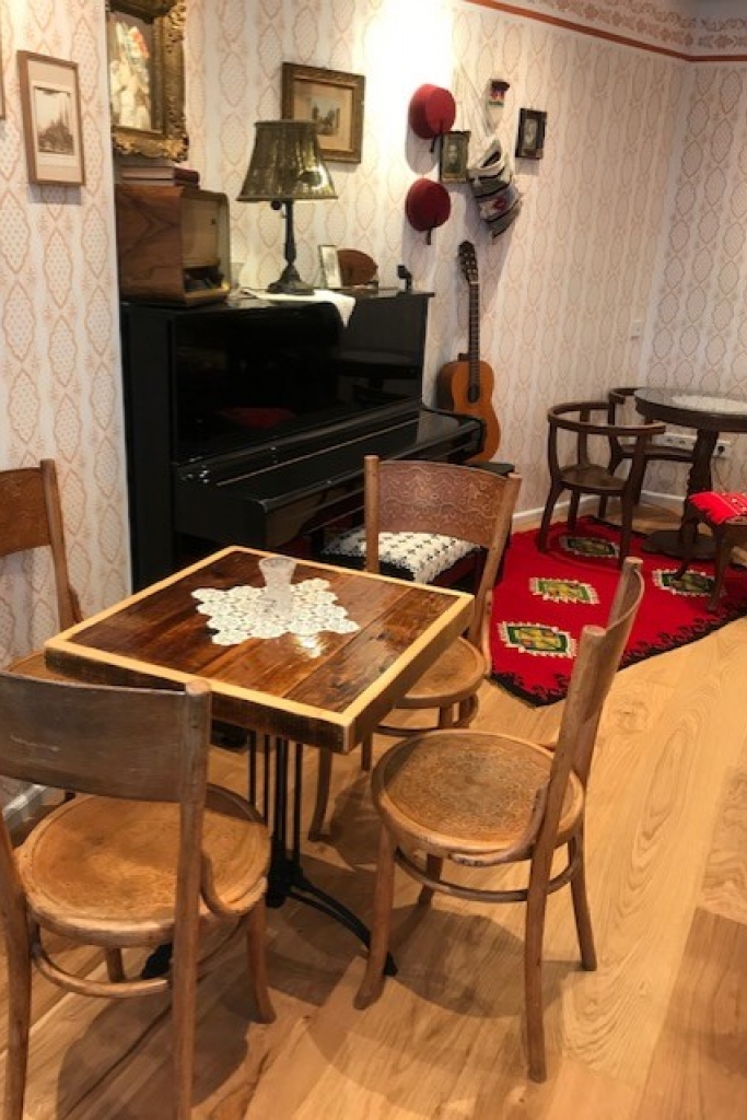 Ons podiumcafé is een plek om samen te komen, te ontspannen en te proeven. We serveren er heerlijke koffie, dranken en eten uit de Balkan. Of proef "onze koffie" (Soort Turkse koffie)!